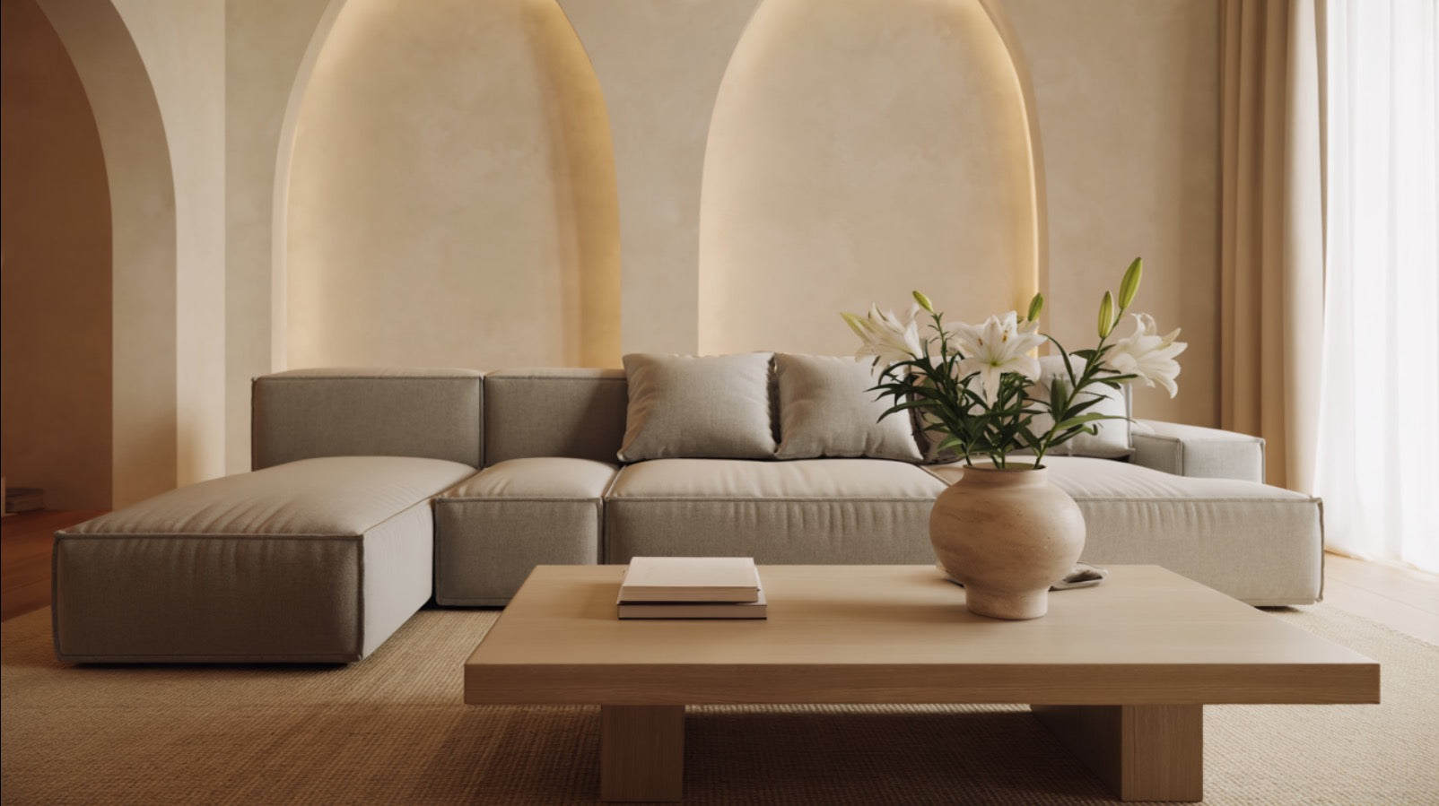 Soft neutrals, warm textures & clean silhouettes lines.