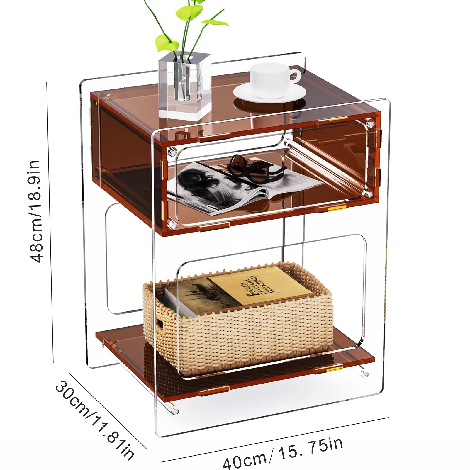 This charming vintage-inspired piece features a sleek design that complements any bedroom decor. This table has open shelves, you'll have all the storage you need to keep your essentials close at hand. Made from high-quality acrylic, it’s not only durable but also adds a touch of elegance to your space. Plus, it comes fully assembled, so you can start enjoying it right away!