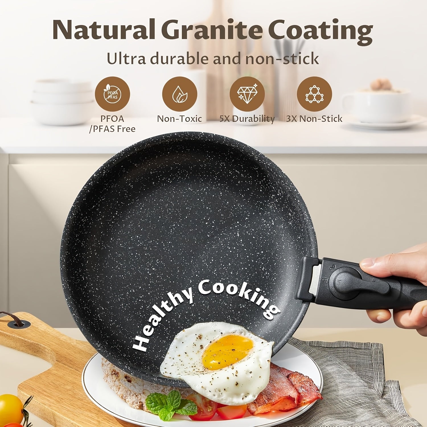 - Packaging: 3x Nonstick Frying Pan, 1x Handle