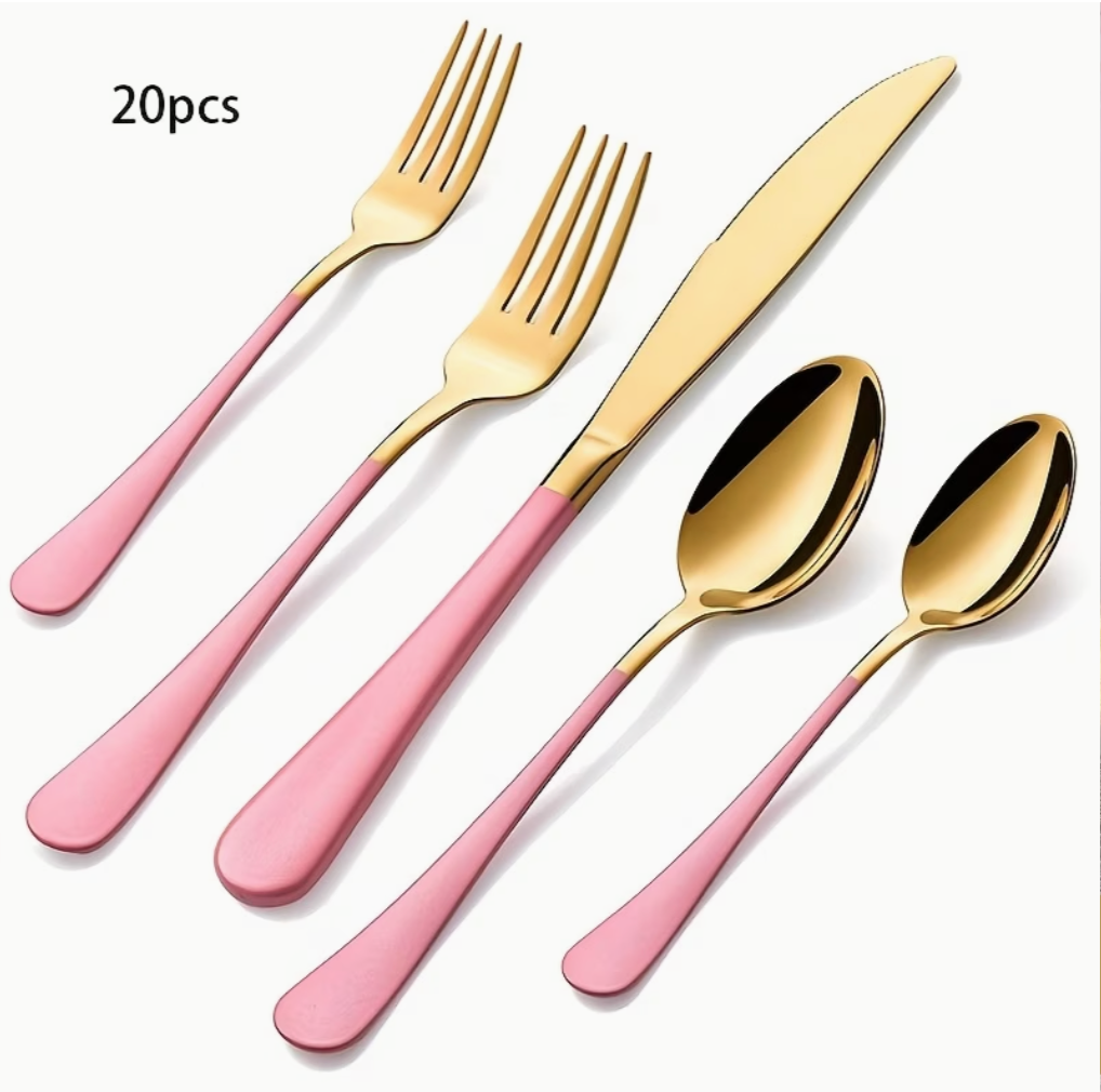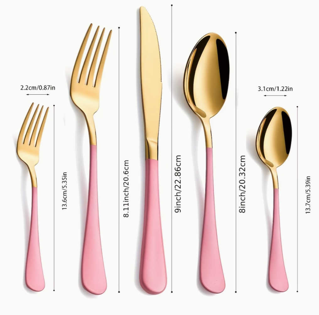 Gold & Pink Cutlery Set | Kitchen Collection | Aroselle