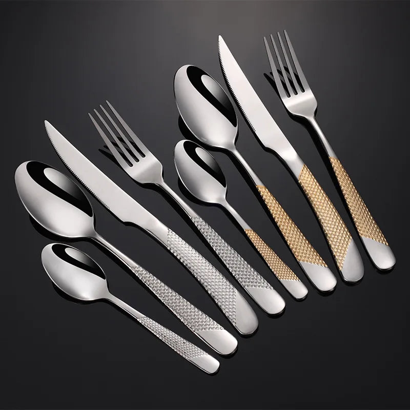 Treat yourself and your loved ones to the perfect blend of style and functionality with the AROSELLE Stainless Steel Star Diamond Handle Cutlery Set!